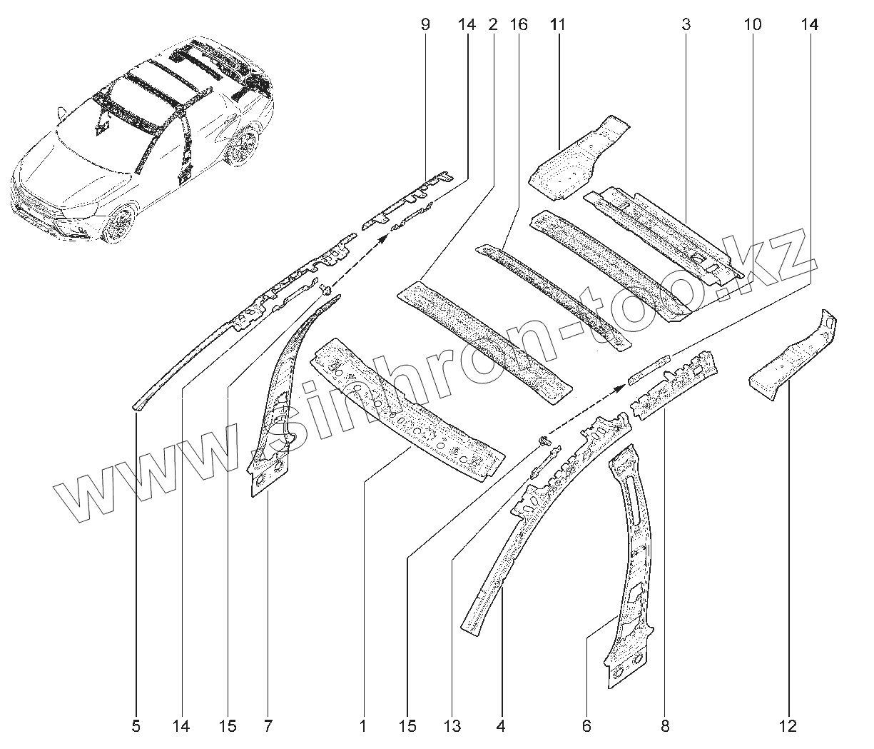 Соединитель стойки заднего окна и полки задка левый в сборе