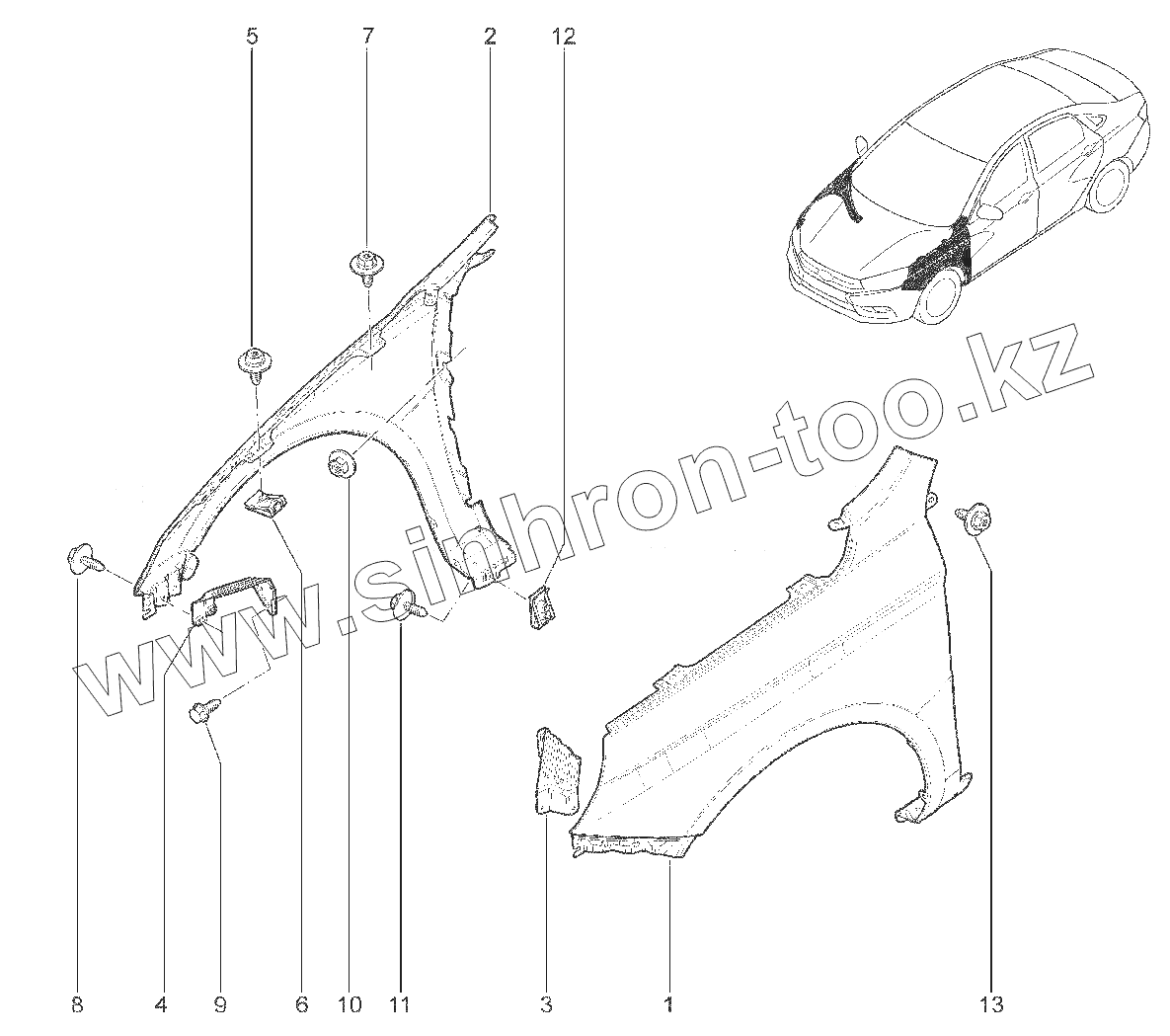 Каталог запасных частей к технике: ВАЗ LADA Vesta. 460110. КРЫЛЬЯ ПЕРЕДНИЕ