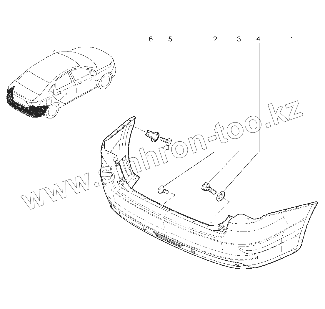Каталог запасных частей к технике: ВАЗ LADA Vesta. 551011. БАМПЕР ЗАДНИЙ (E1, E2)