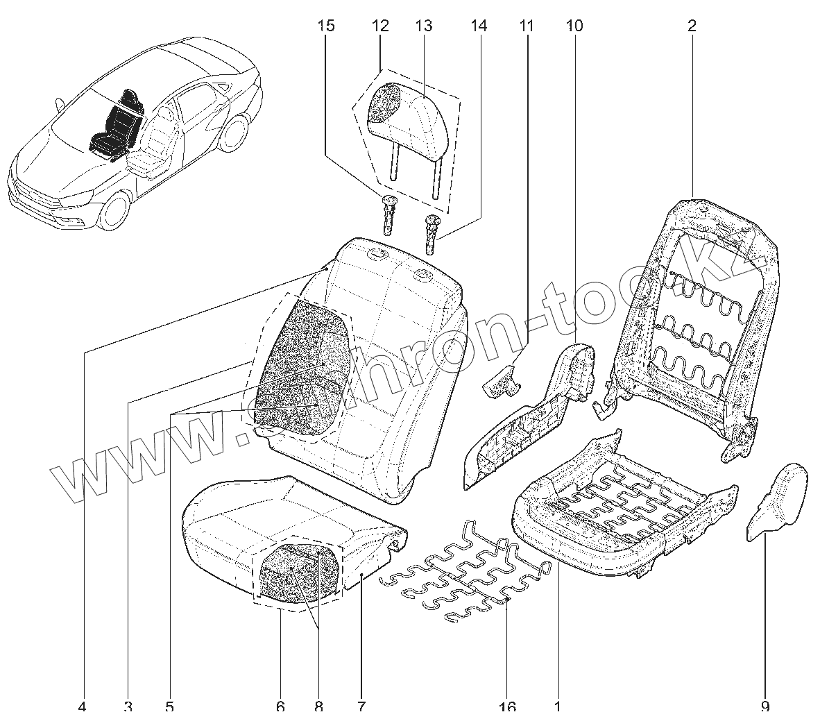 Каталог запасных частей к технике: ВАЗ LADA Vesta. 770012. СИДЕНЬЕ ПАССАЖИРА