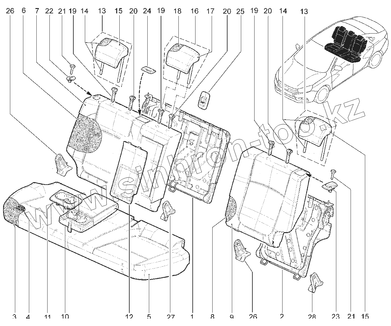 780110. ЗАДНИЕ СИДЕНЬЯ (С подлокотником)