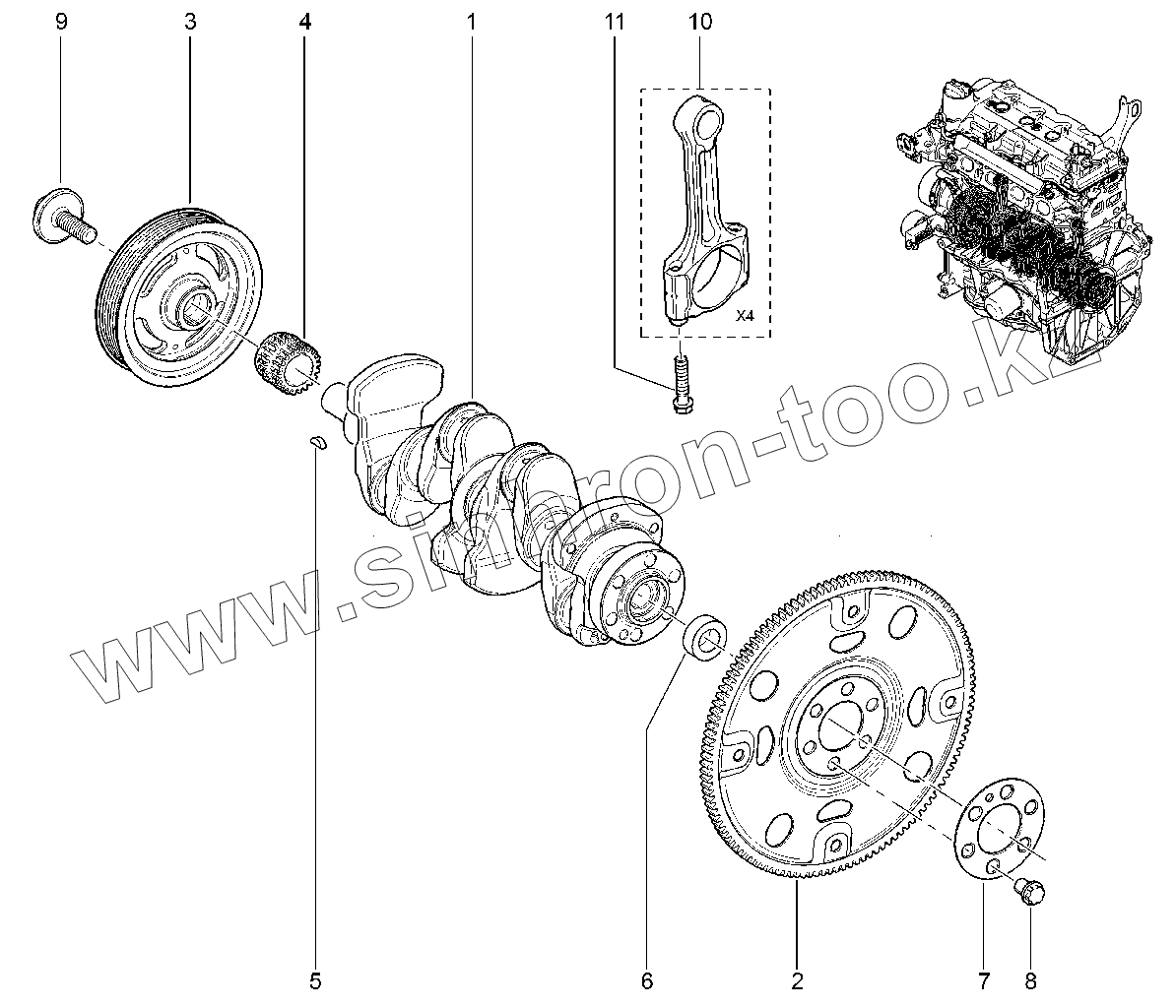 Каталог запасных частей к технике: ВАЗ LADA Vesta. 114110. Коленчатый вал, маховик (Н4М)