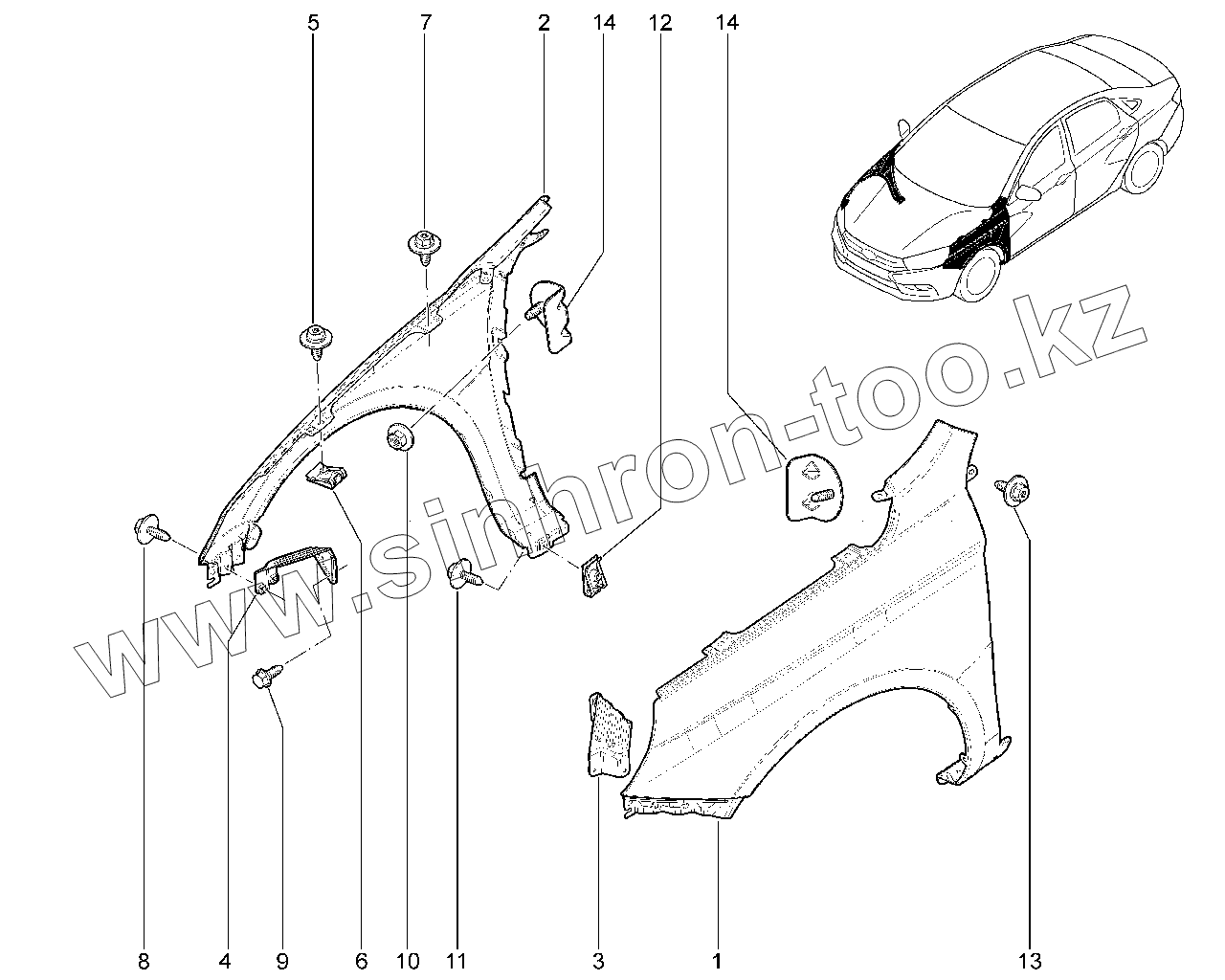 Каталог запасных частей к технике: ВАЗ LADA Vesta. 430110. Крылья передние