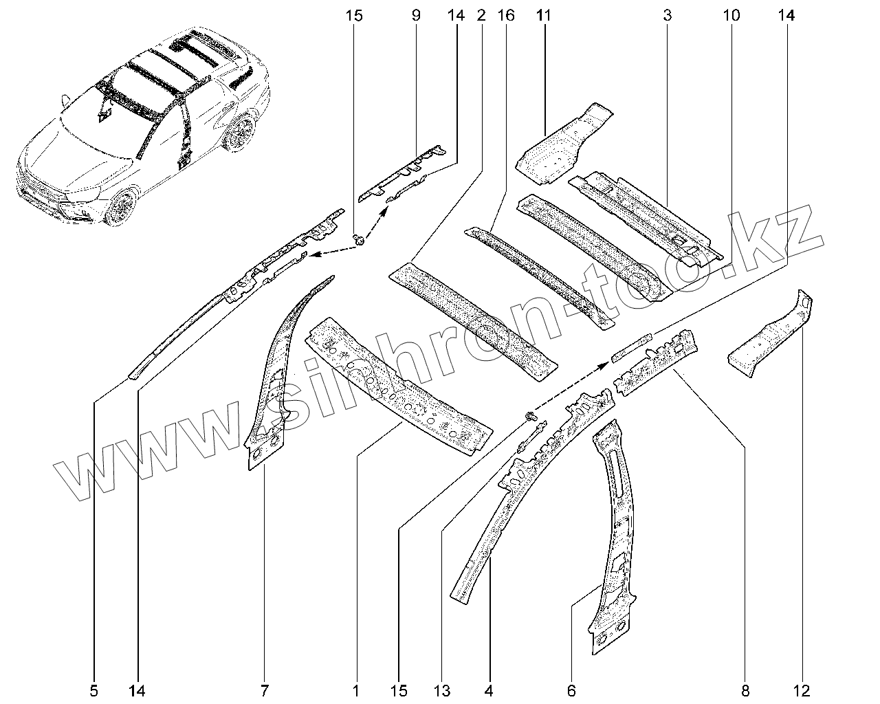 Соединитель стойки заднего окна и полки задка левый в сборе