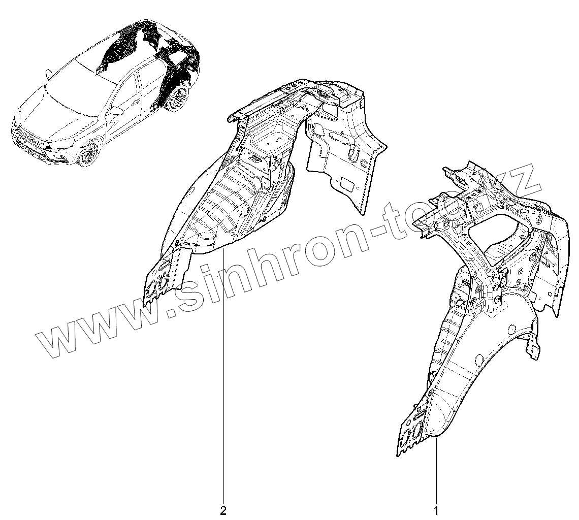 Каталог запасных частей к технике: ВАЗ LADA Vesta. 442110. Панели боковины внутренние (универсал)