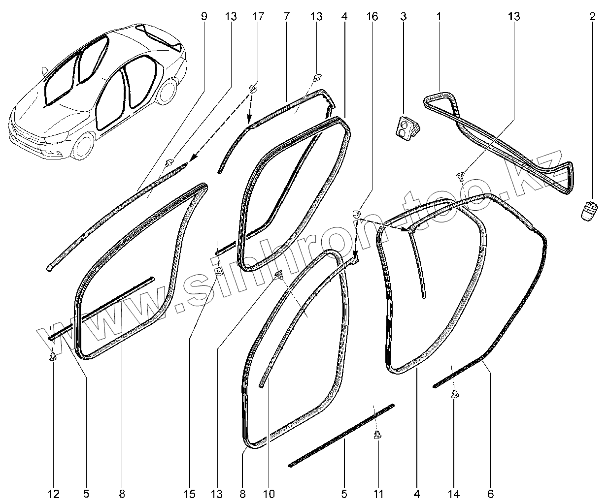 Каталог запасных частей к технике: ВАЗ LADA Vesta. 468110. Уплотнители проемов дверей (седан)