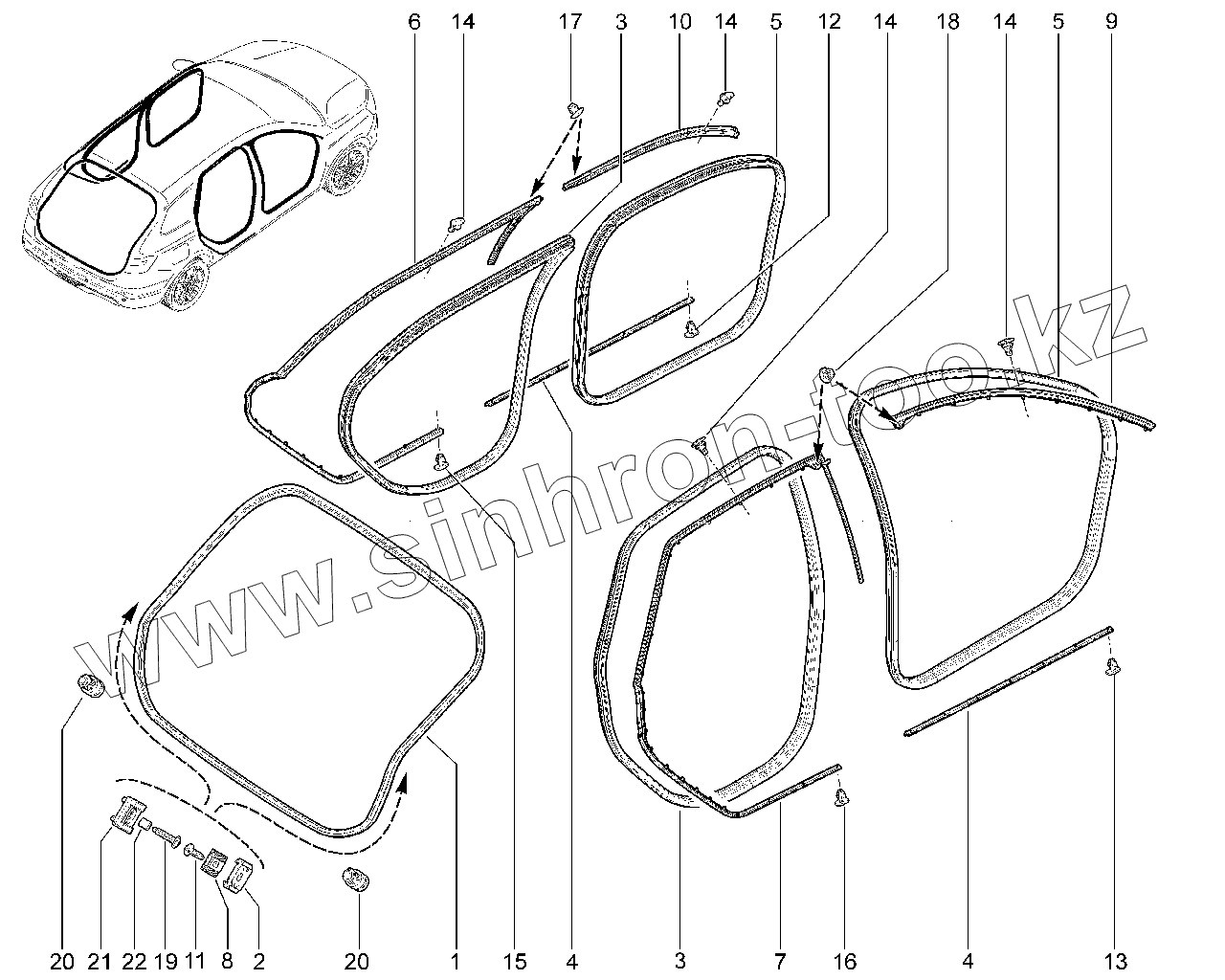 Каталог запасных частей к технике: ВАЗ LADA Vesta. 468210. Уплотнители проемов дверей (универсал)