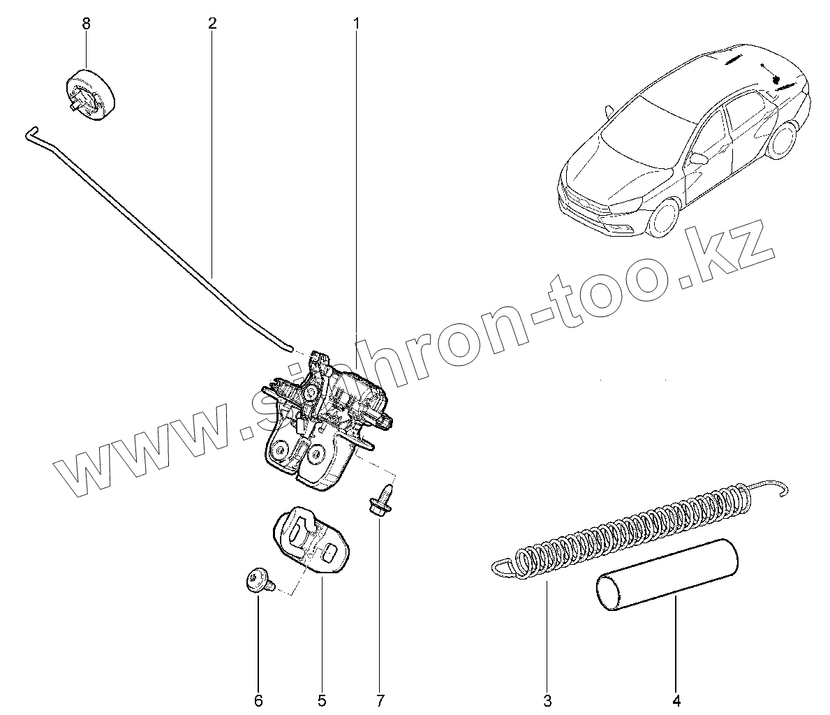 Каталог запасных частей к технике: ВАЗ LADA Vesta. 484110. Замок крышки багажника (седан)
