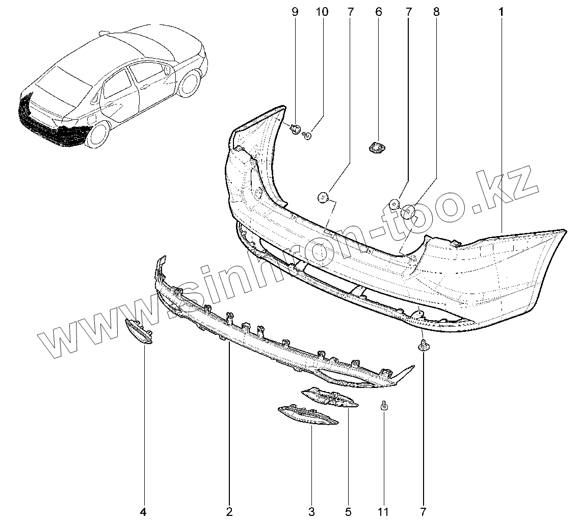 Каталог запасных частей к технике: ВАЗ LADA Vesta. 501120. Бампер задний (FL)