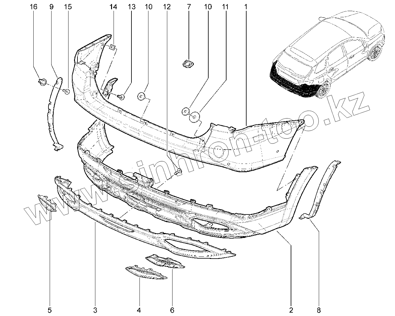 Каталог запасных частей к технике: ВАЗ LADA Vesta. 501320. Бампер задний (FL)(Кросс)