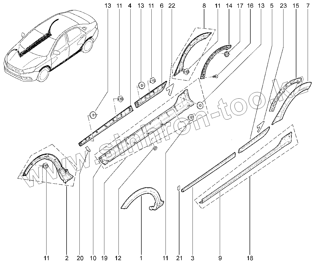 Каталог запасных частей к технике: ВАЗ LADA Vesta. 503110. Молдинги (Кросс)