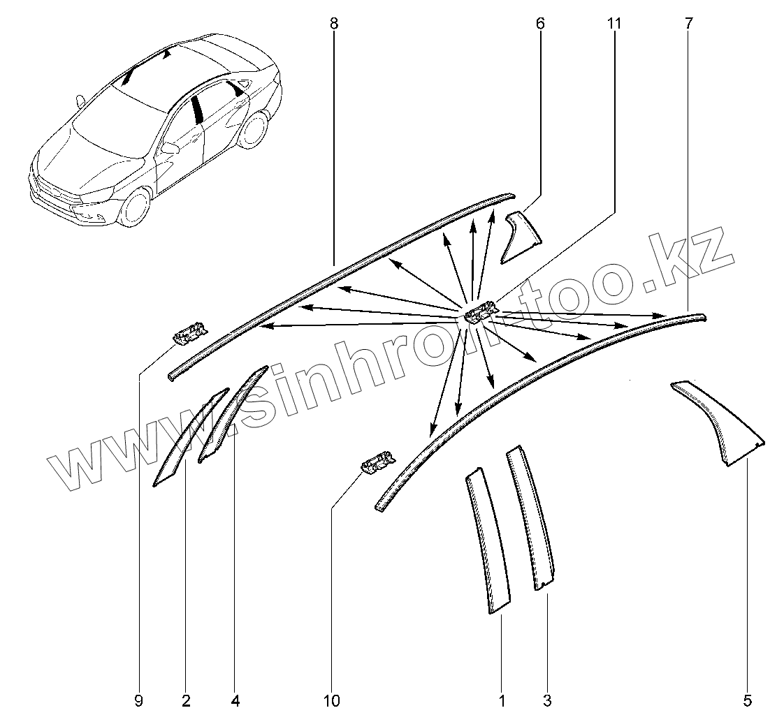 Каталог запасных частей к технике: ВАЗ LADA Vesta. 505110. Накладки стоек дверей (седан)