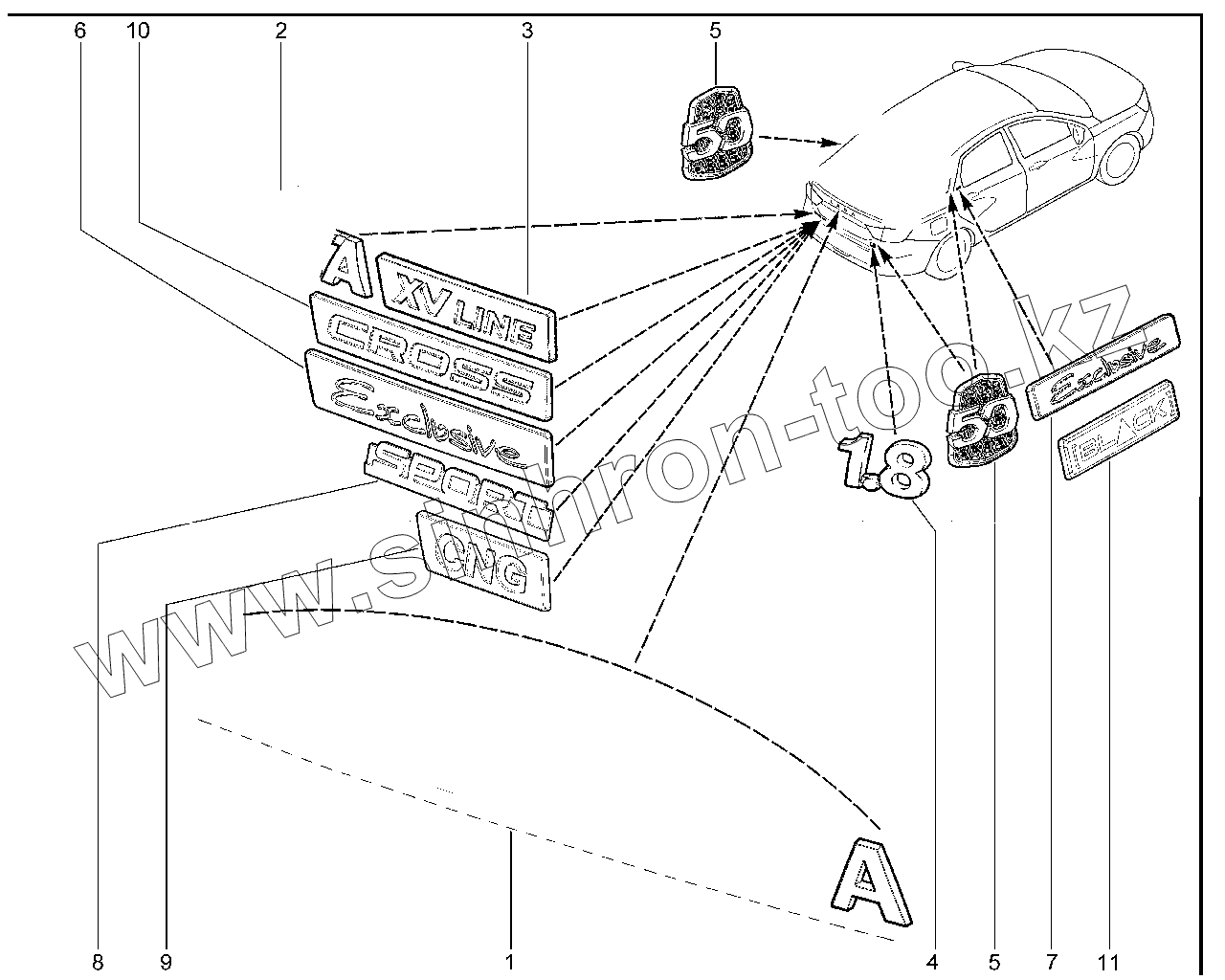 Каталог запасных частей к технике: ВАЗ LADA Vesta. 511110. Орнамент задка