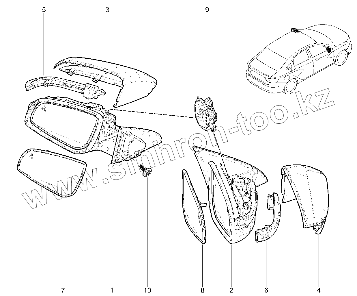 Каталог запасных частей к технике: ВАЗ LADA Vesta. 520310. Зеркала заднего вида наружные складные