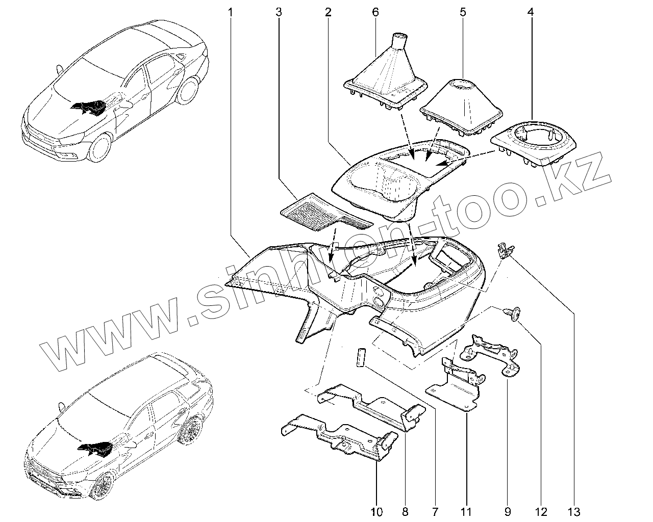 Каталог запасных частей к технике: ВАЗ LADA Vesta. 540110. Облицовка тоннеля пола передняя