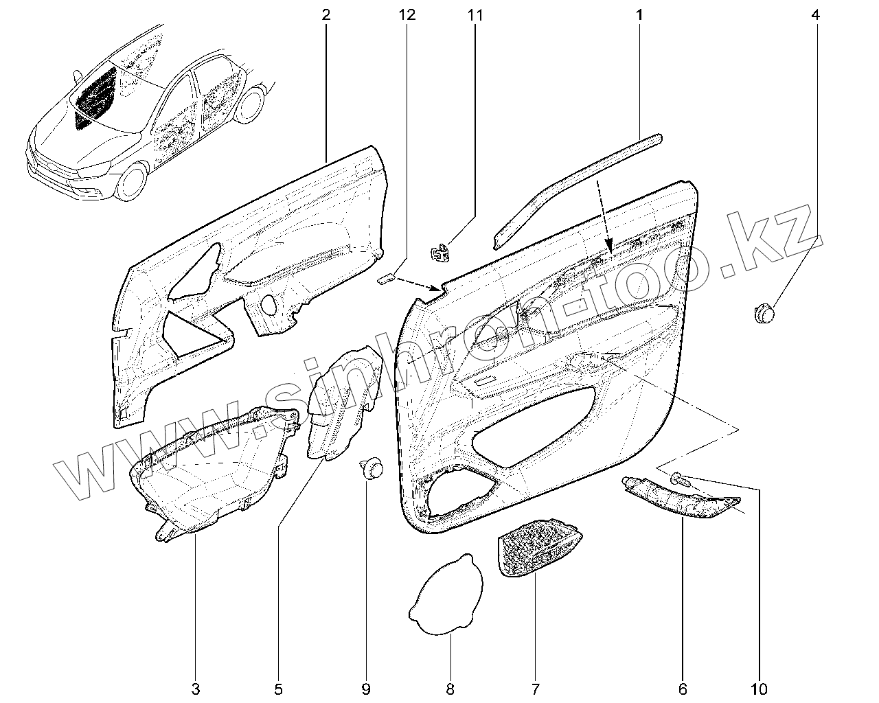 Каталог запасных частей к технике: ВАЗ LADA Vesta. 576110. Элементы обивки передней правой двери