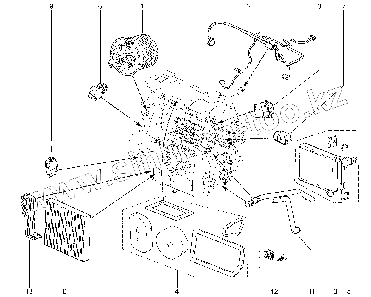 Каталог запасных частей к технике: ВАЗ LADA Vesta. 603110. Отопитель (деталировка)