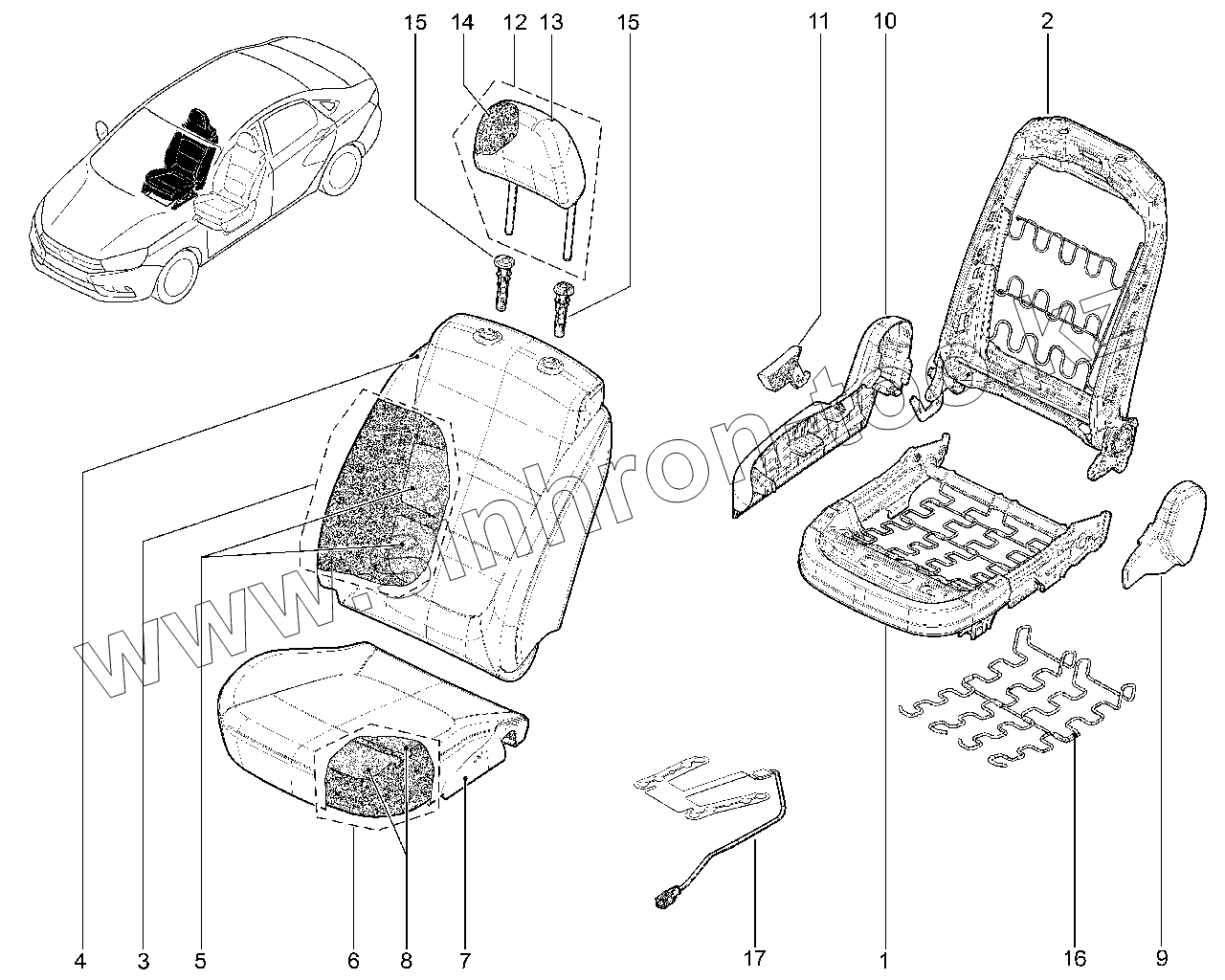 Каталог запасных частей к технике: ВАЗ LADA Vesta. 722110. Сиденье пассажира
