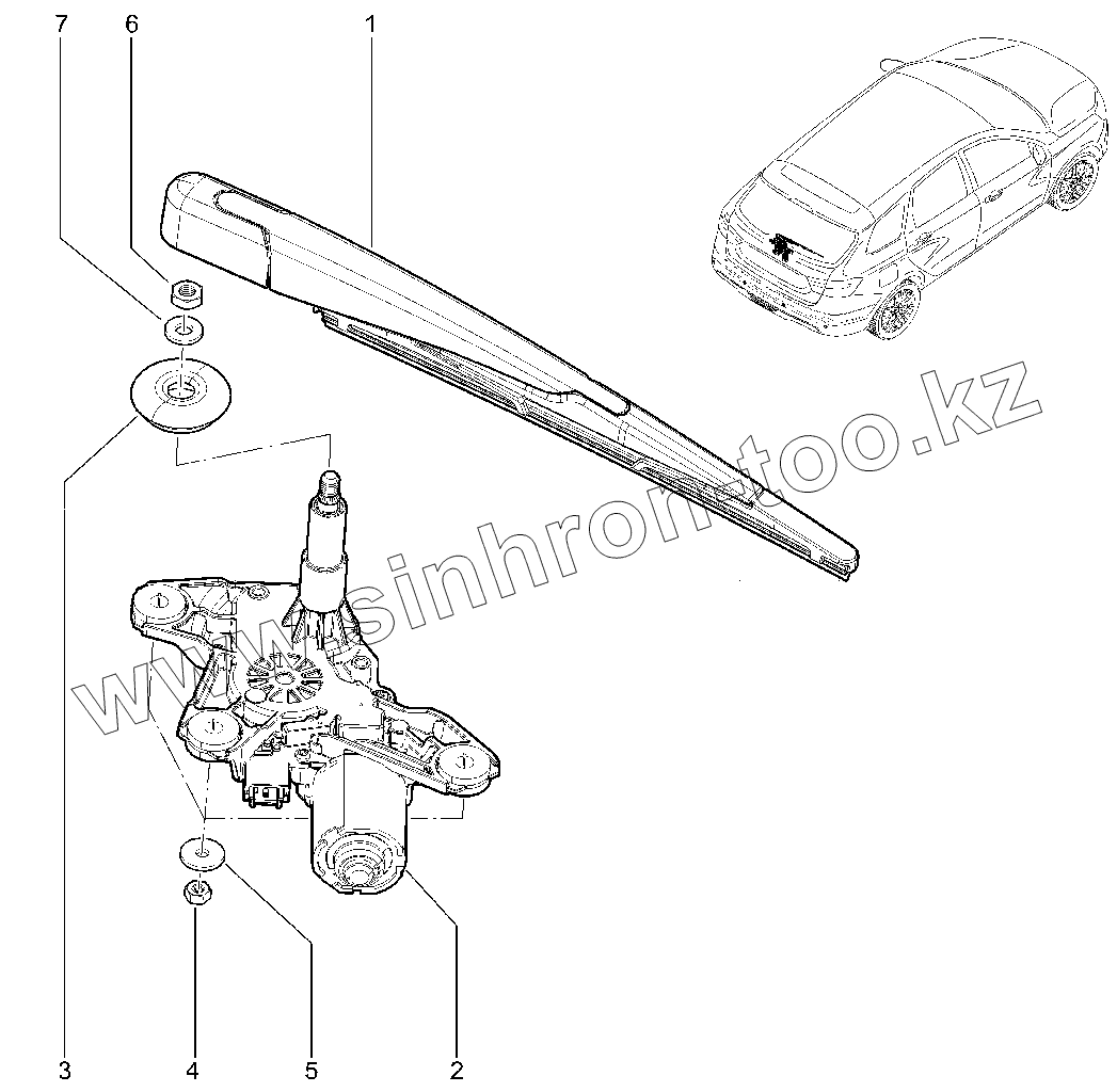 Каталог запасных частей к технике: ВАЗ LADA Vesta. 851110. Стеклоочиститель задний