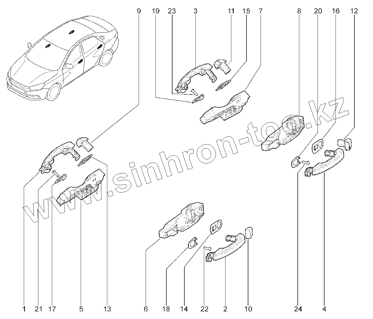 Каталог запасных частей к технике: ВАЗ LADA Vesta Cross. 503011. РУЧКИ ДВЕРЕЙ НАРУЖНИЕ
