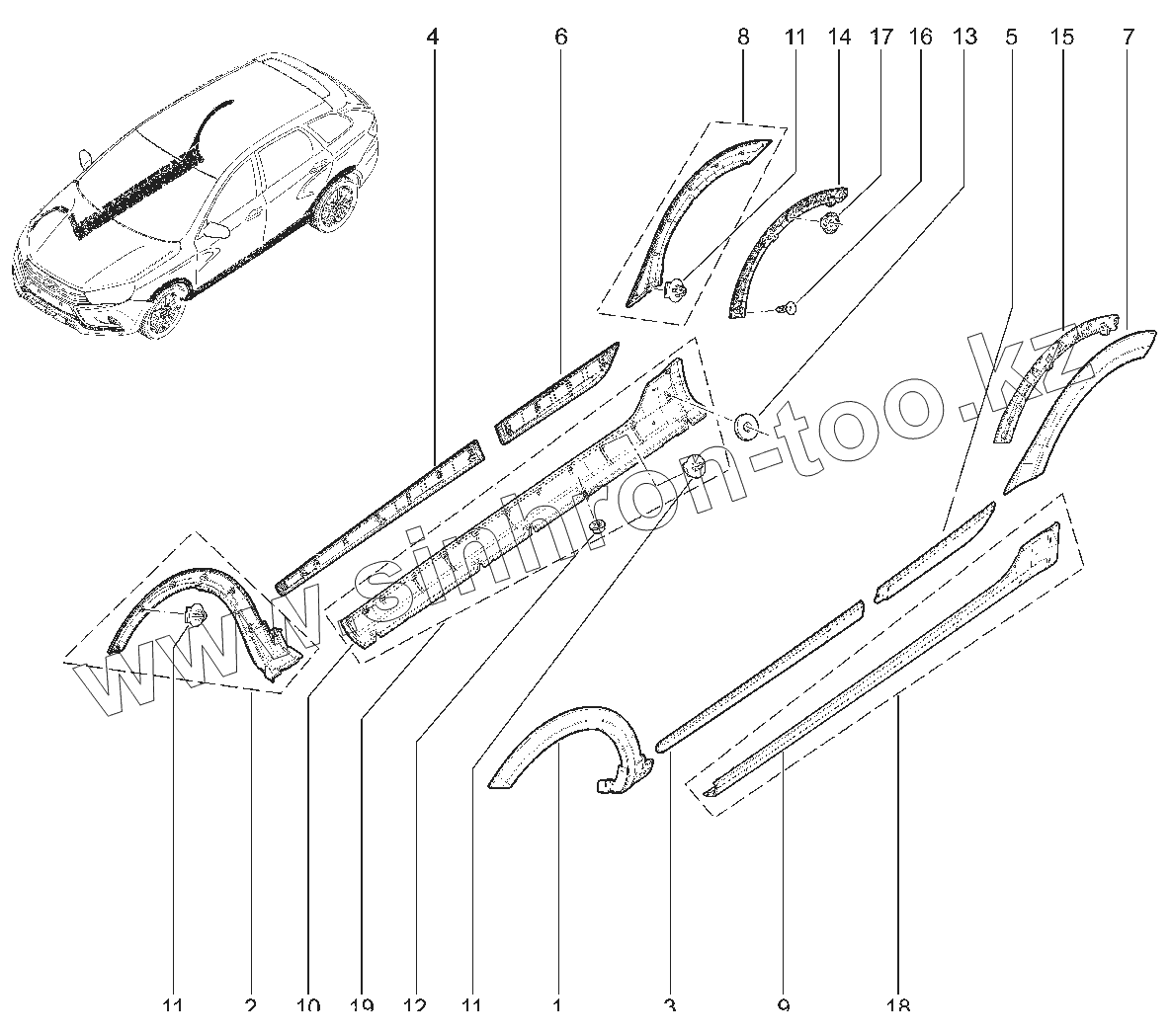 Каталог запасных частей к технике: ВАЗ LADA Vesta Cross. 552010. МОЛДИНГИ ДВЕРЕЙ