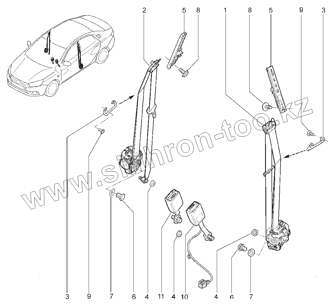 Каталог запасных частей к технике: ВАЗ LADA Vesta Cross. 592010. РЕМНИ БЕЗОПАСНОСТИ ПЕРЕДНИЕ