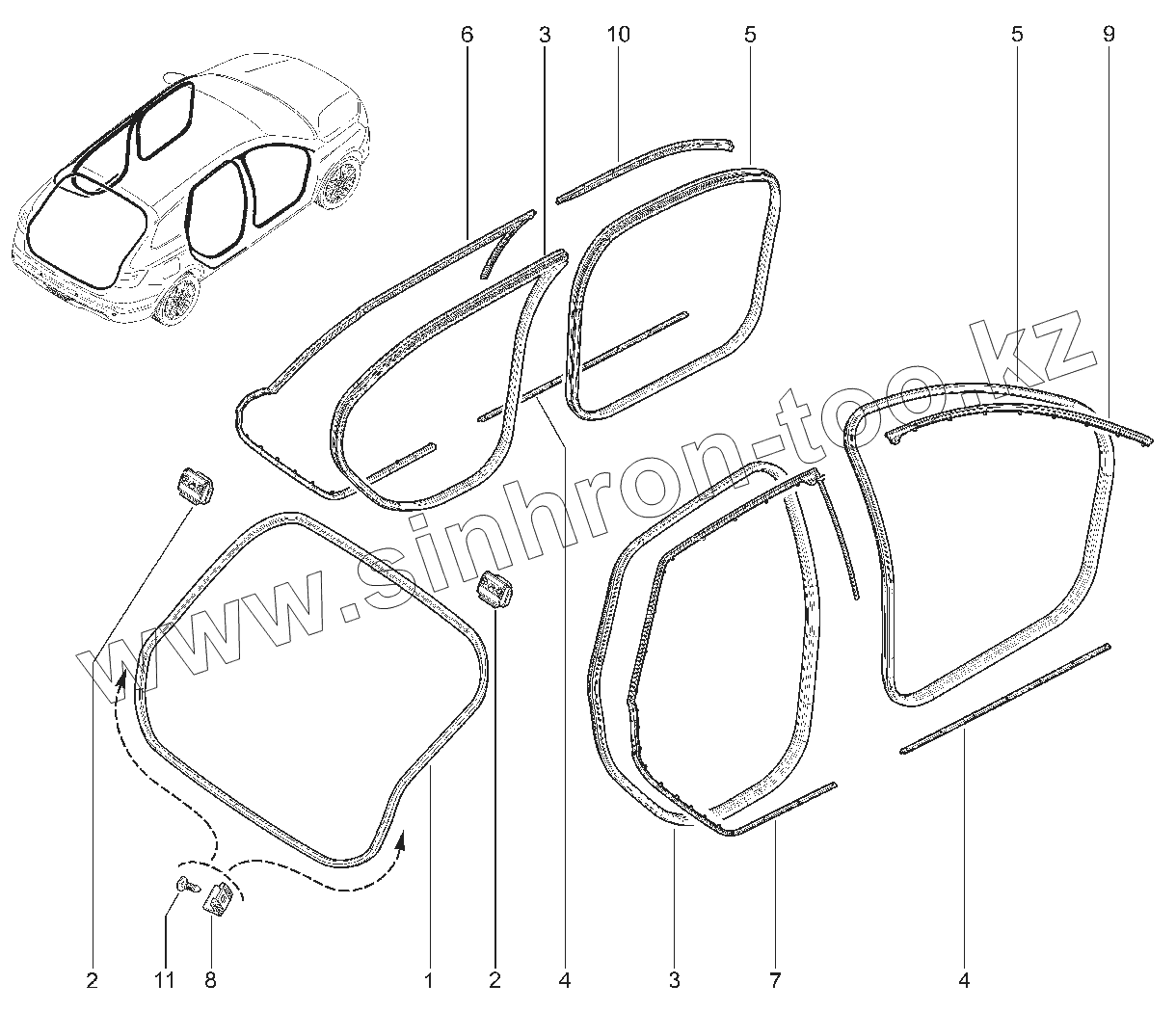 Каталог запасных частей к технике: ВАЗ LADA Vesta Cross. 650220. УПЛОТНИТЕЛИ ДВЕРЕЙ (универсал)