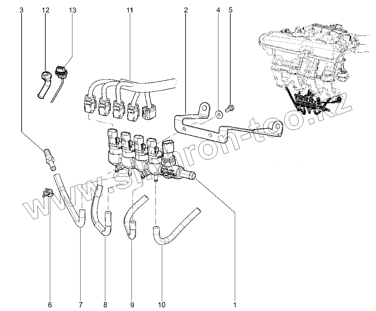 Каталог запасных частей к технике: ВАЗ LADA Vesta CROSS. 199510. Рампа газовая (CNG)