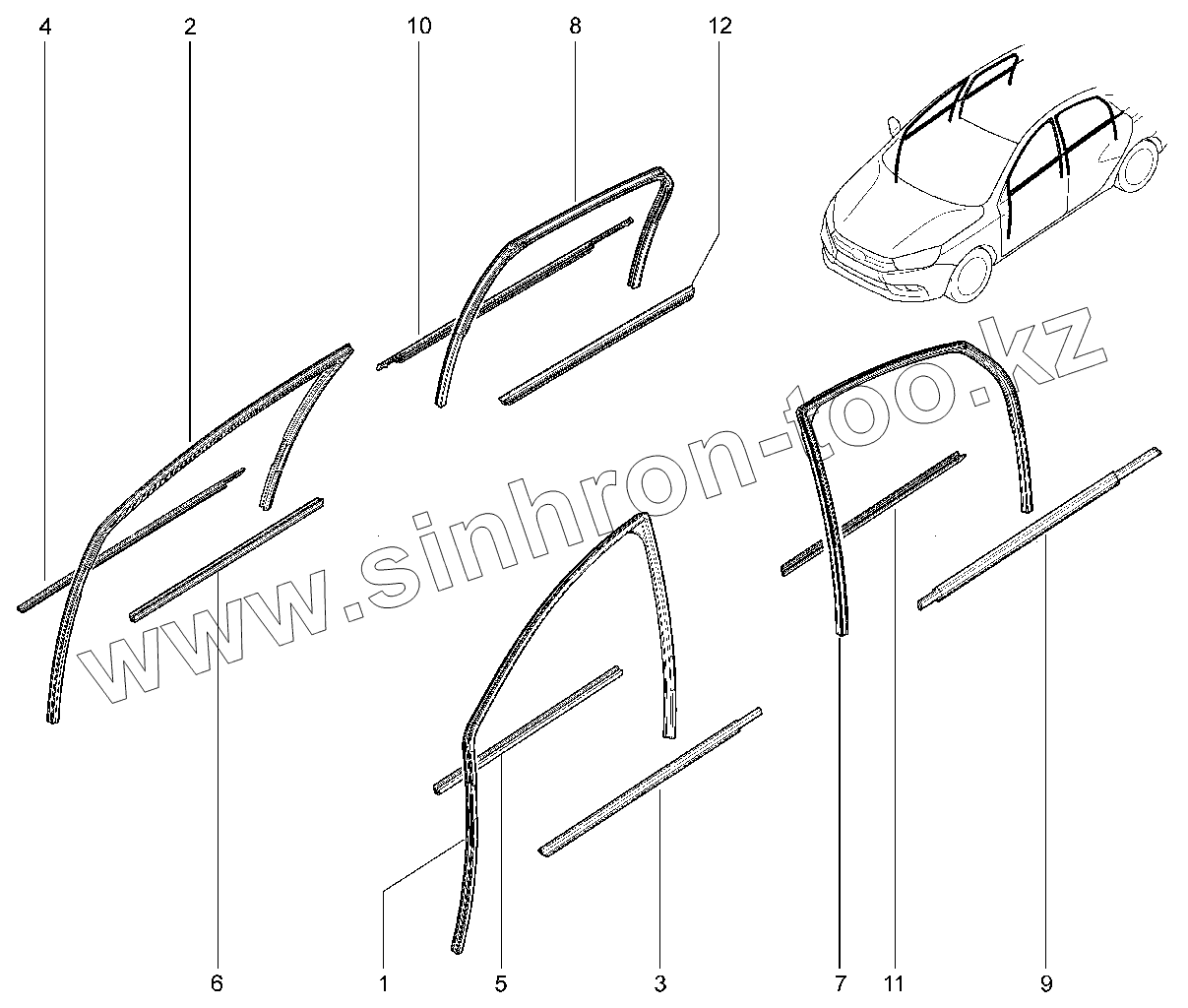 Каталог запасных частей к технике: ВАЗ LADA Vesta CROSS. 471110. Уплотнители стекол дверей