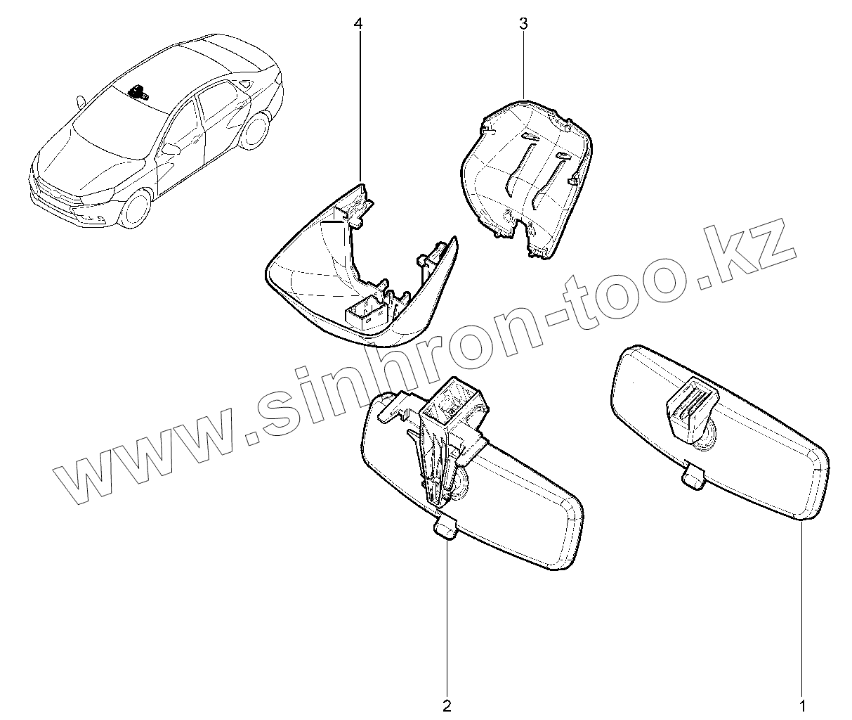 Каталог запасных частей к технике: ВАЗ LADA Vesta CROSS. 521110. Зеркало заднего вида внутреннее