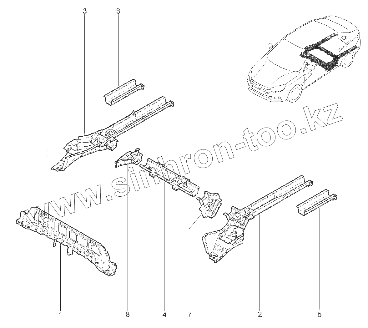 ЛОНЖЕРОН ПОЛА ЗАДНИЙ ЛЕВЫЙ В СБОРЕ