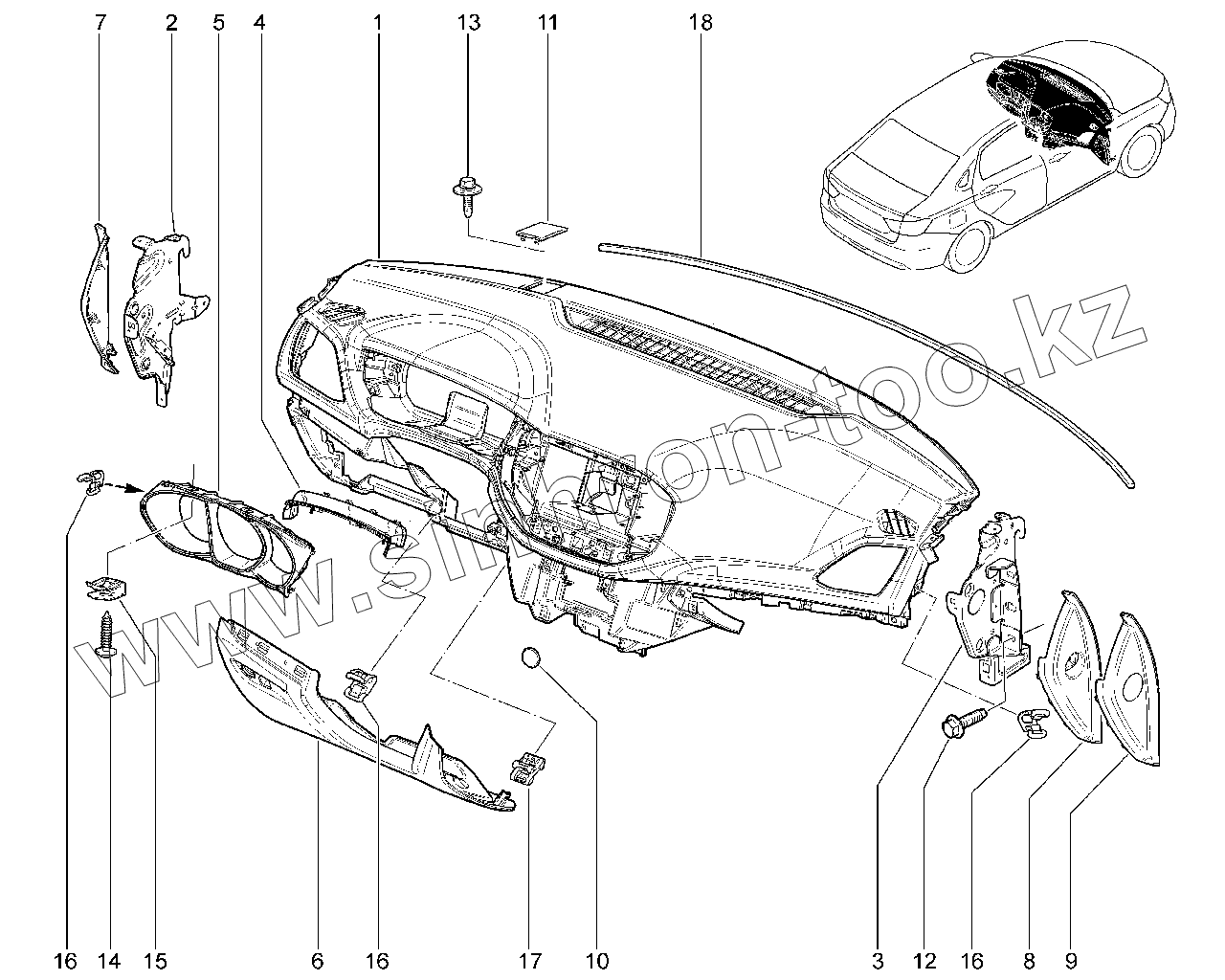 КАРКАС ПАНЕЛИ ПРИБОРОВ В СБОРЕ (АНТРАЦИТ)