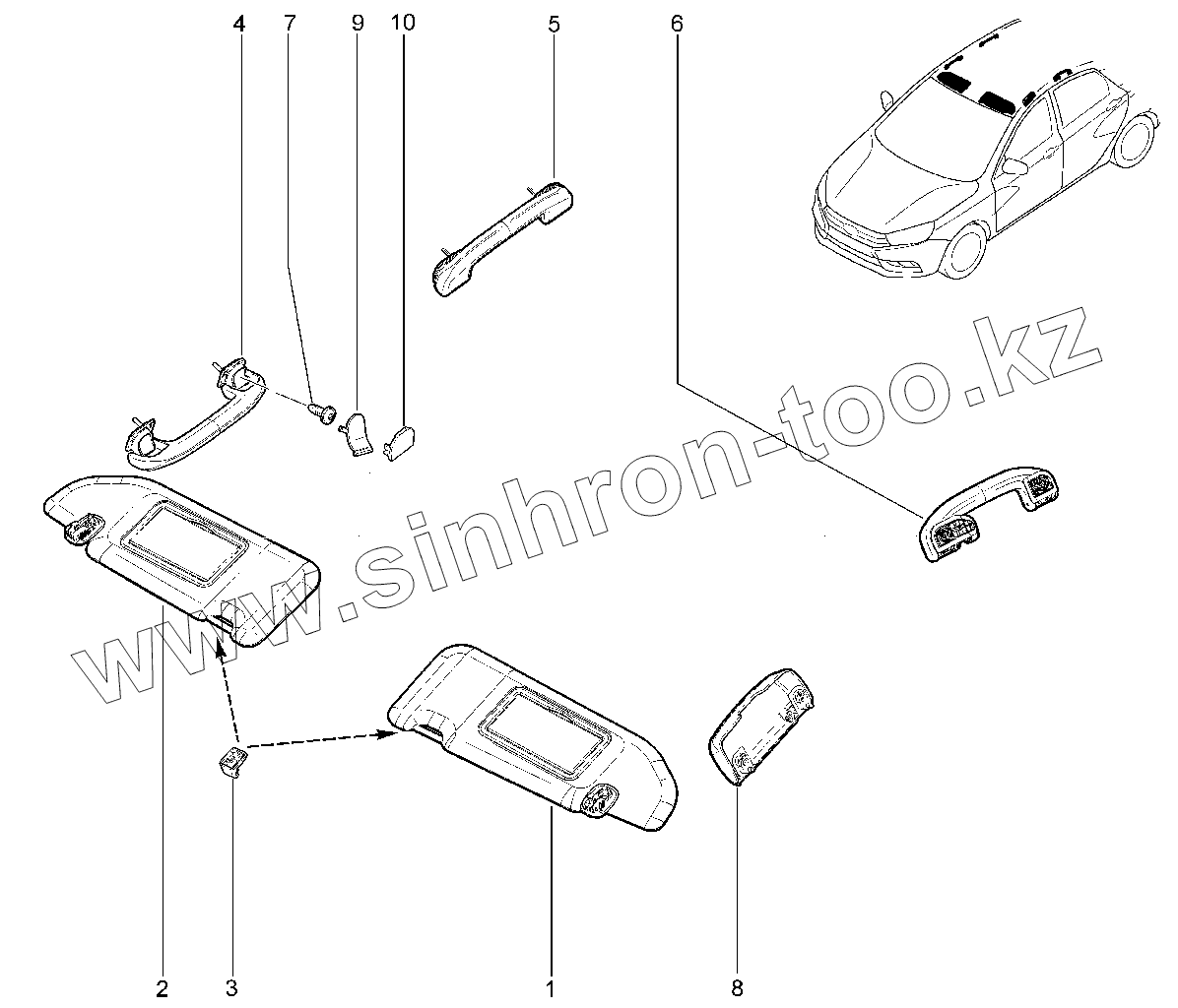 Каталог запасных частей к технике: ВАЗ LADA Vesta SPORT. 542110. Козырьки, поручни