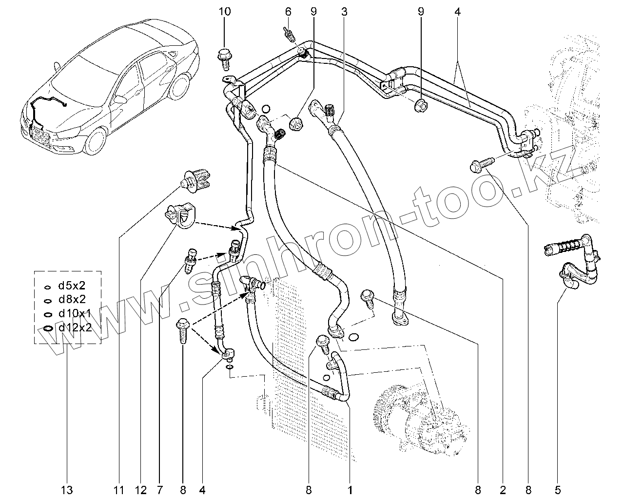 Каталог запасных частей к технике: ВАЗ LADA Vesta SPORT. 621110. Трубопровод, шланги кондиционера