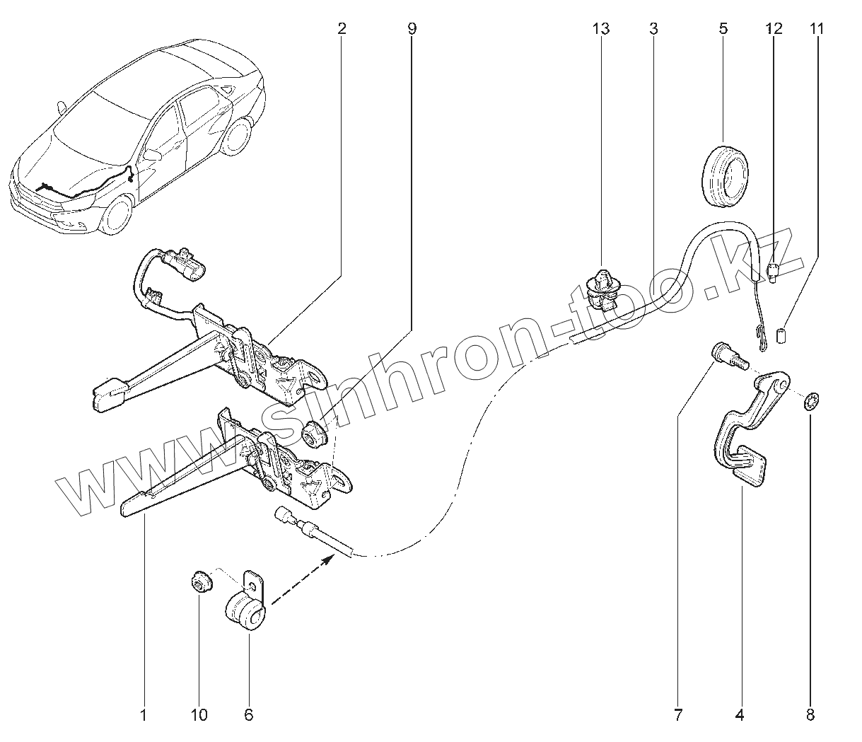 Каталог запасных частей к технике: ВАЗ LADA Vesta SW. 520110. ПРИВОД ОТКРЫТИЯ КАПОТА