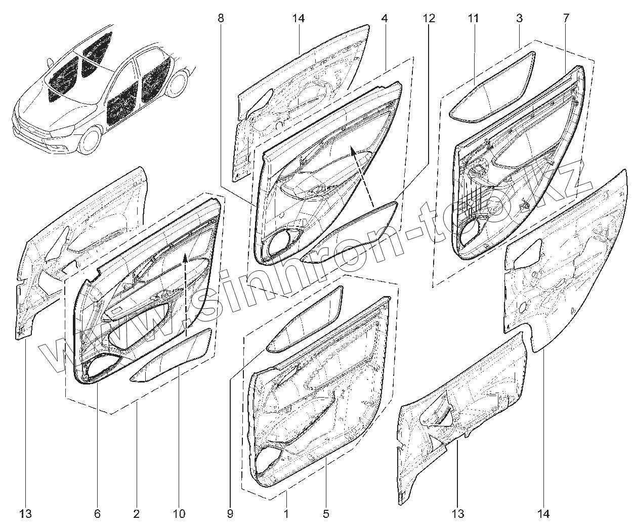 Каталог запасных частей к технике: ВАЗ LADA Vesta SW. 720210. ОБИВКИ ДВЕРЕЙ С НАКЛАДКАМИ