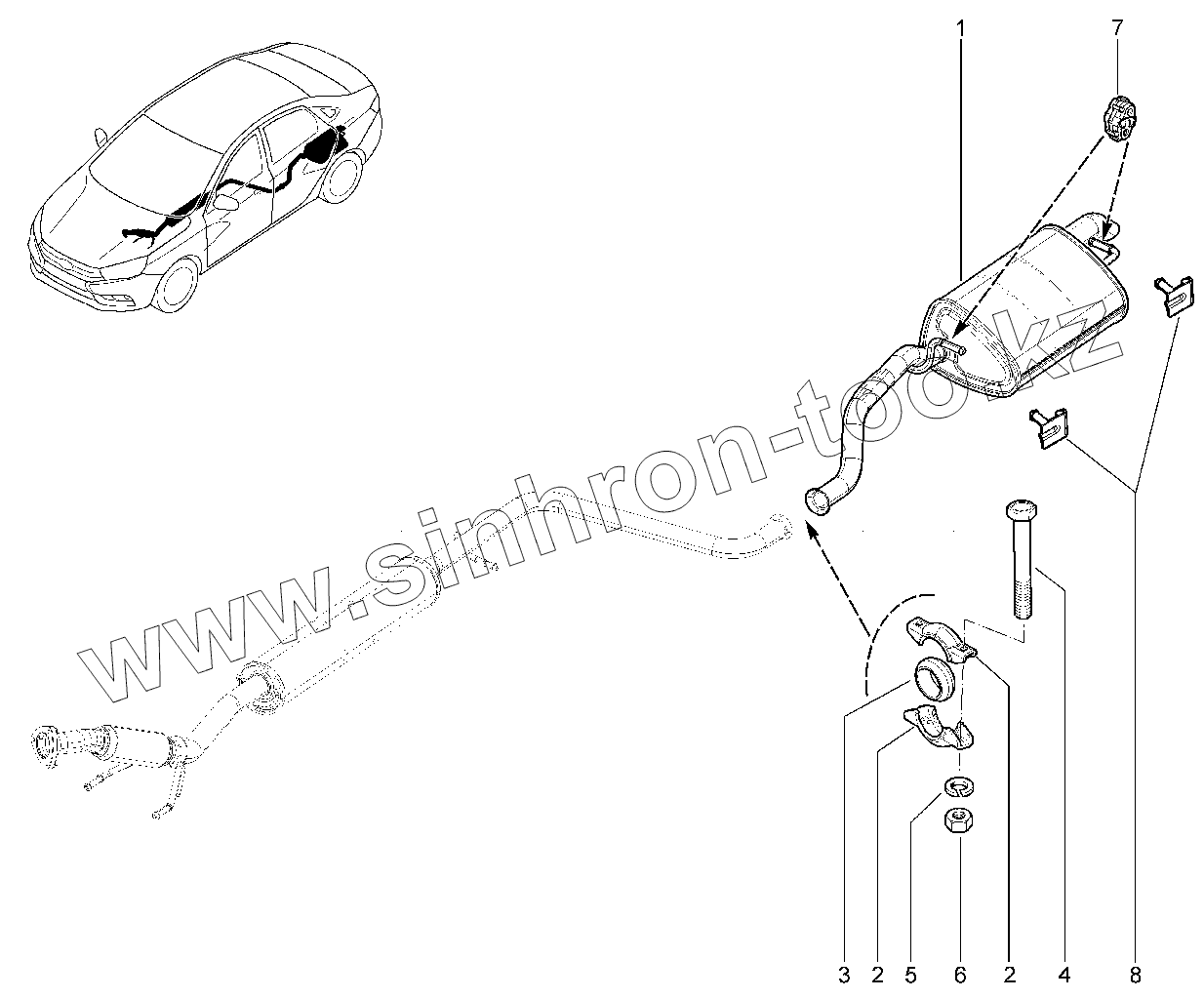 Каталог запасных частей к технике: ВАЗ LADA Vesta SW. 143220. Глушитель основной (FL)