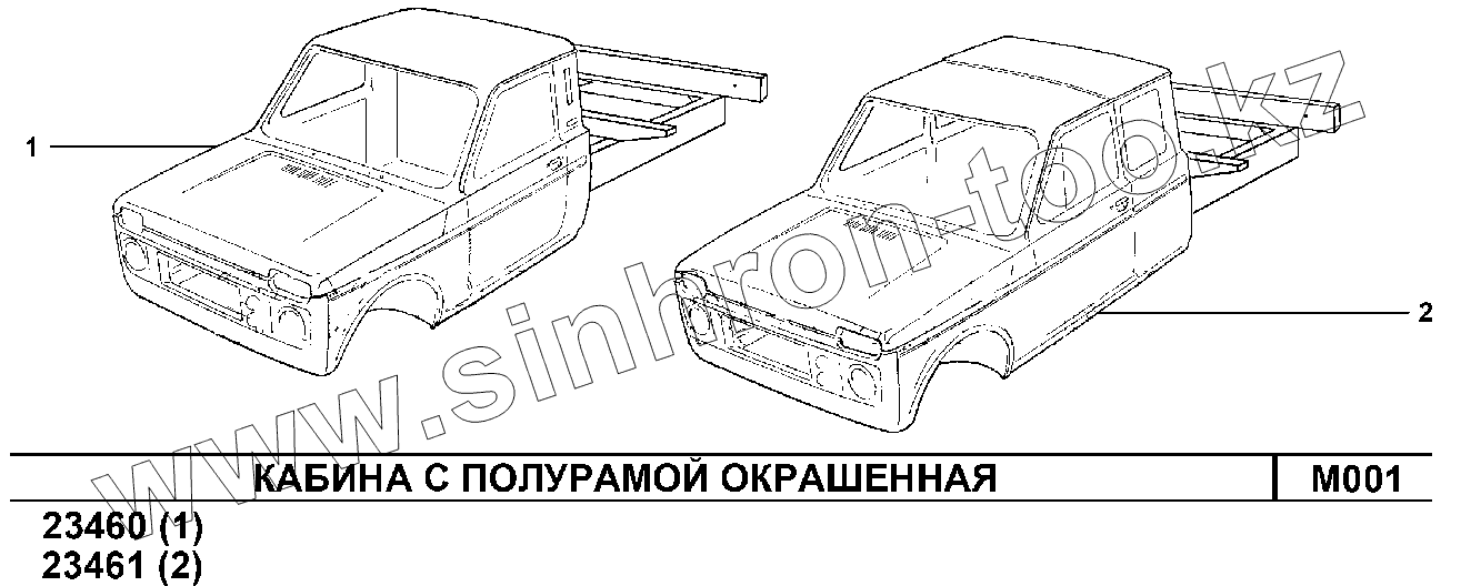 Каталог запасных частей к технике: ВАЗ LADA VIS 23460. Кабина с полурамой окрашенная