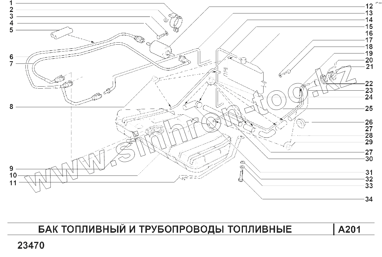 Каталог запасных частей к технике: ВАЗ LADA VIS 23470. Бак топливный и трубопроводы топливные