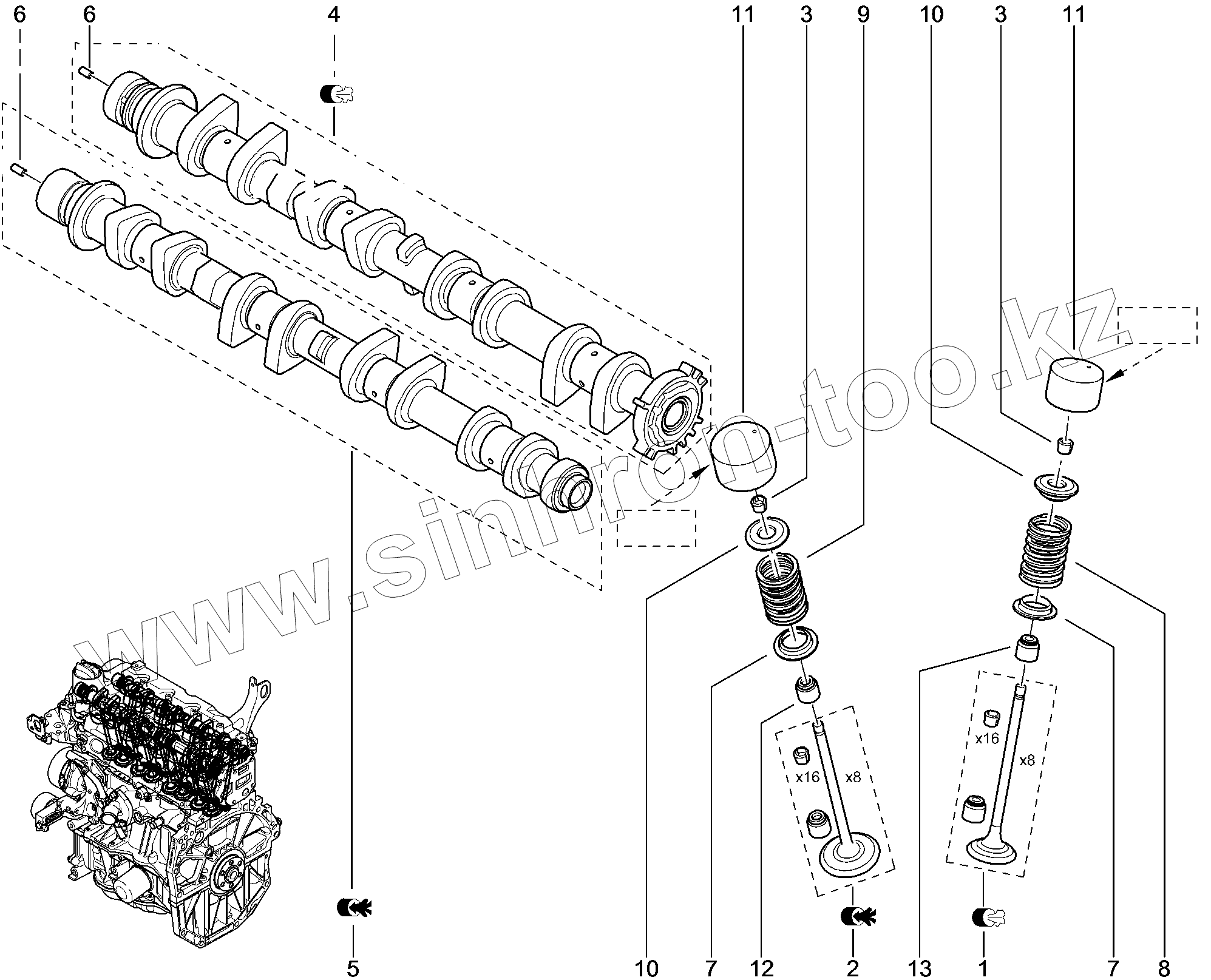 Каталог запасных частей к технике: ВАЗ LADA XRAY. 114111. ГРМ (распредвал, клапана)