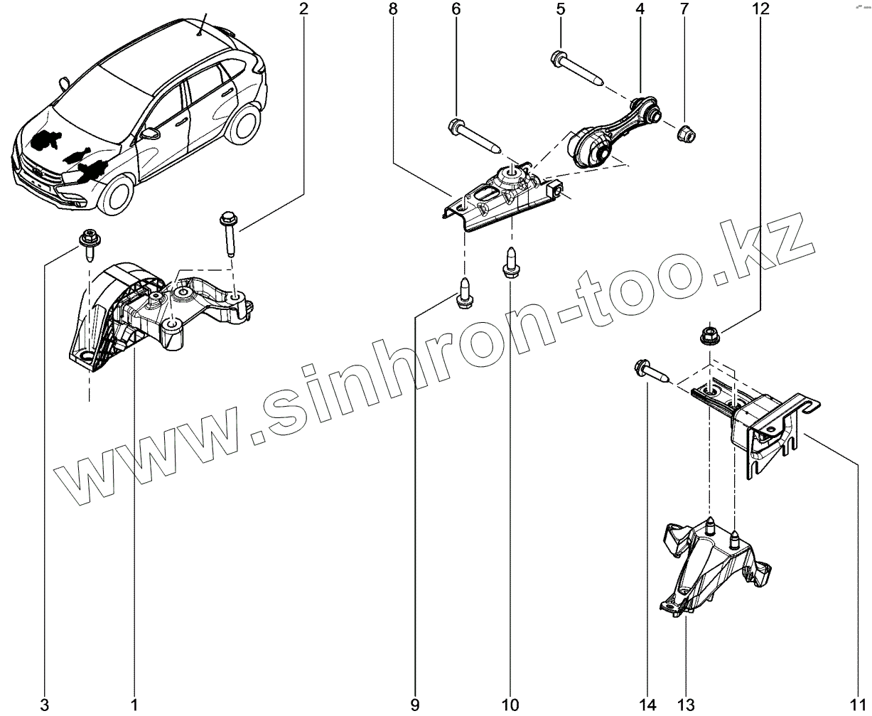 Каталог запасных частей к технике: ВАЗ LADA XRAY. 198010-1577932 Подвеска двигателя