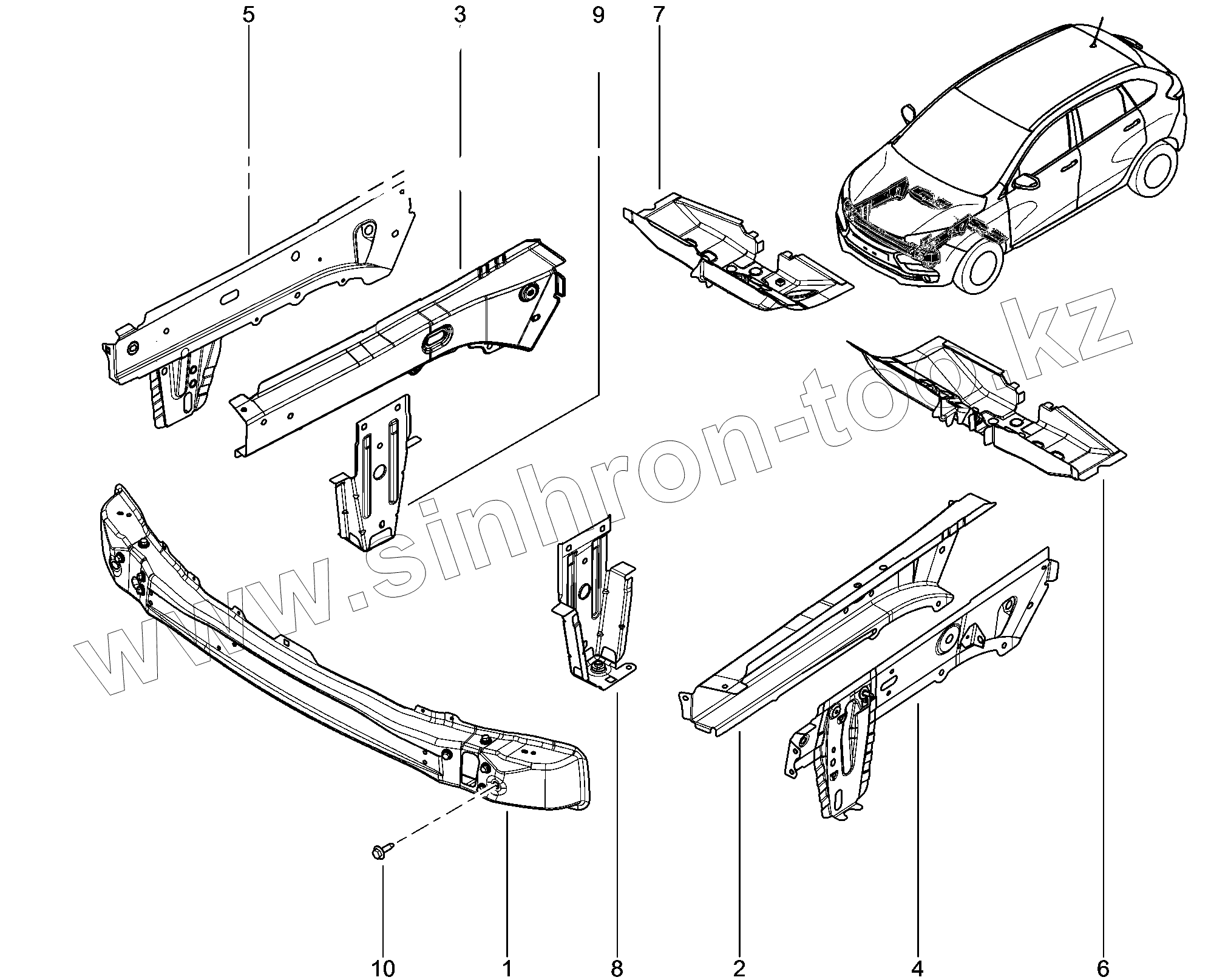 Каталог запасных частей к технике: ВАЗ LADA XRAY. 411010-1599243 Элементы нижние передние