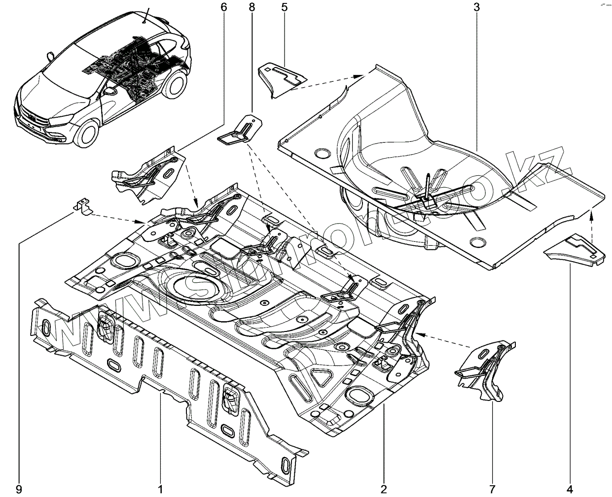 Каталог запасных частей к технике: ВАЗ LADA XRAY. 413010. Элементы нижние задние