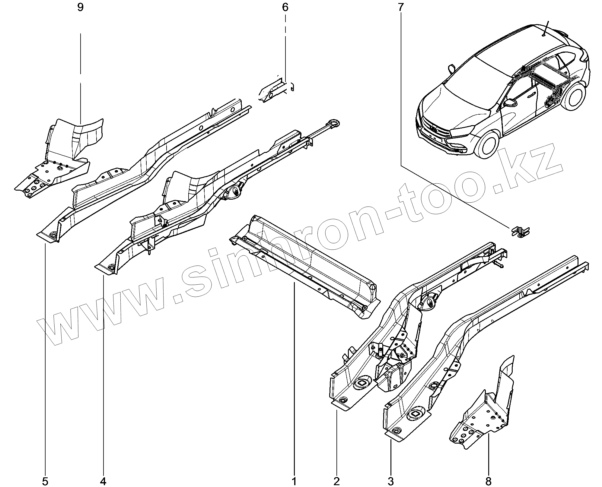 Каталог запасных частей к технике: ВАЗ LADA XRAY. 414010. Элементы нижние задние