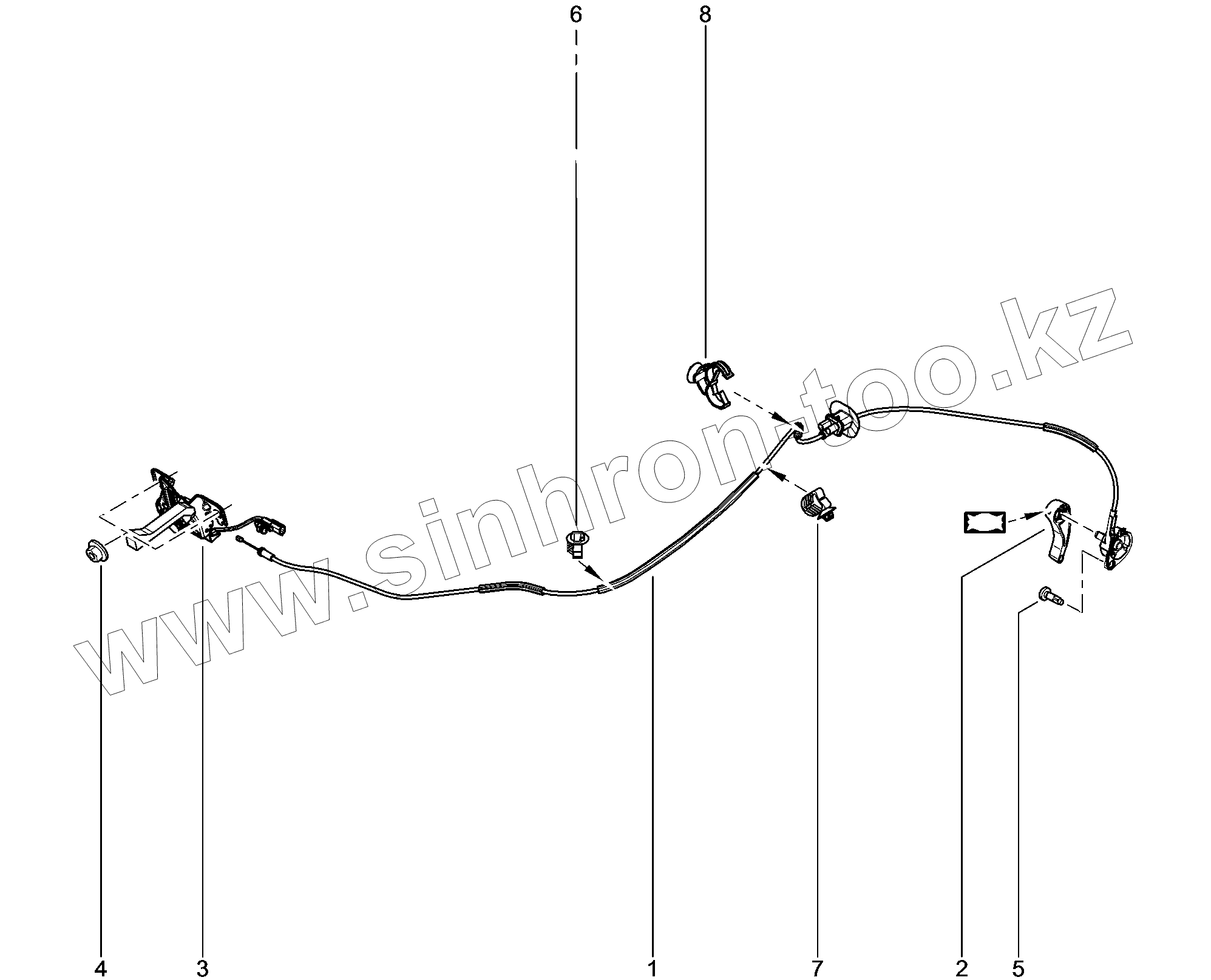 Оболочка тяги привода замка капота с поводком и тягой в сборе
