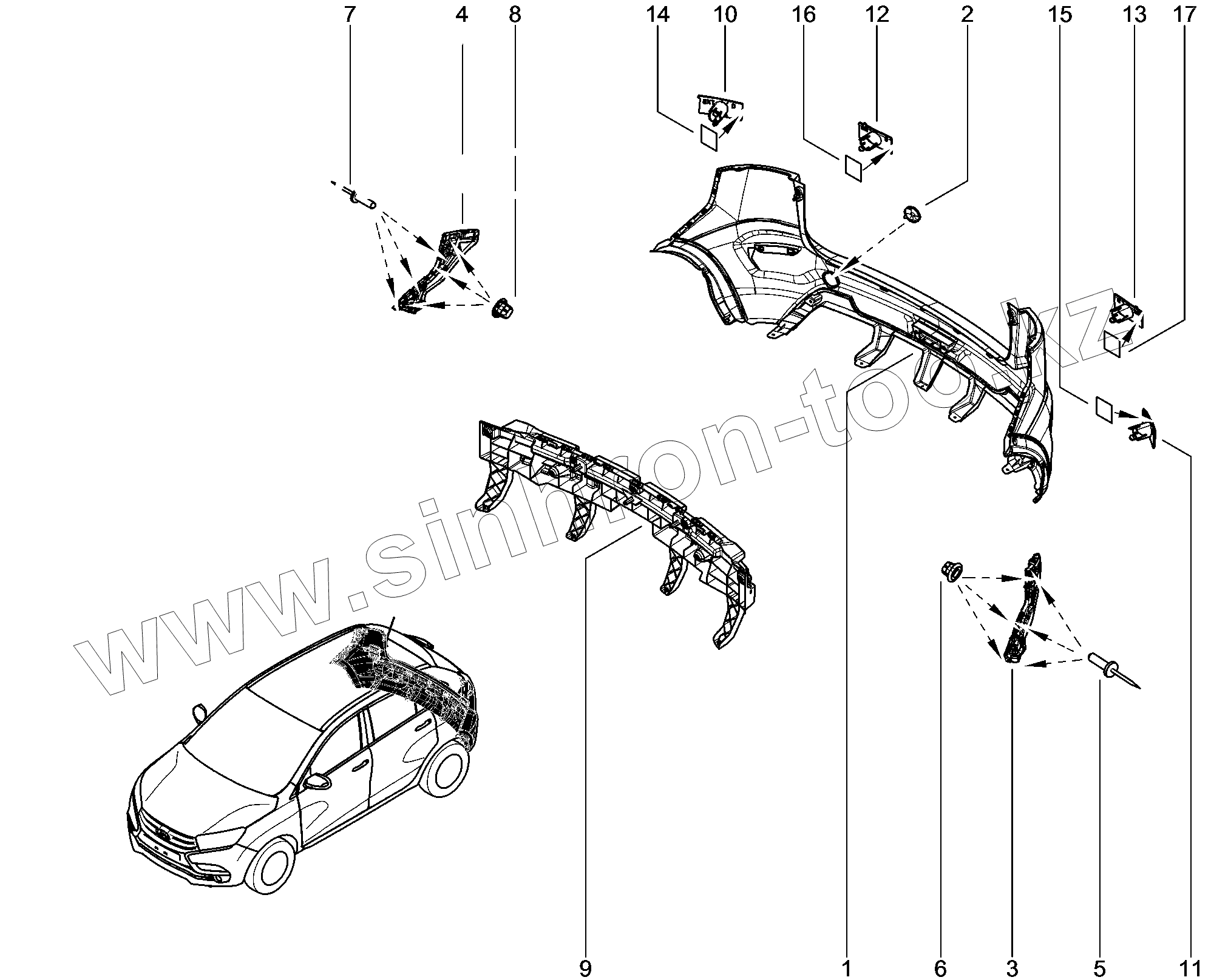 Каталог запасных частей к технике: ВАЗ LADA XRAY. 551010. Бампер задний