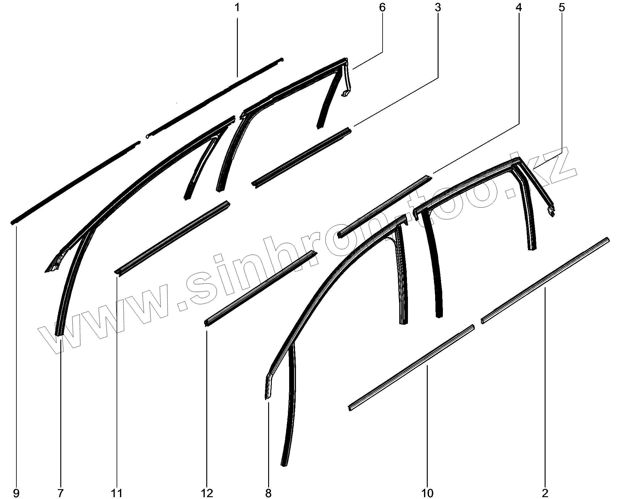 Каталог запасных частей к технике: ВАЗ LADA XRAY. 660110. Направляющие передних стёкол