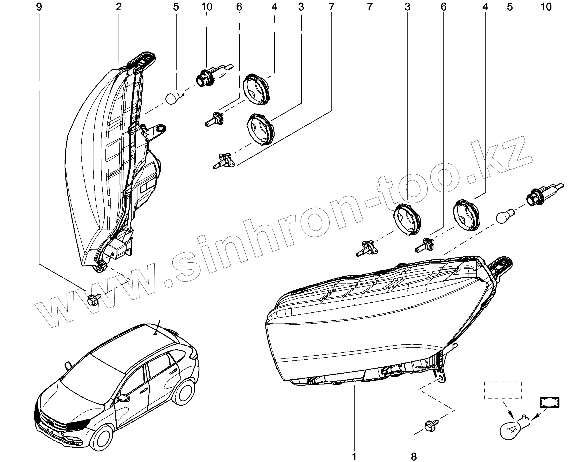 Каталог запасных частей к технике: ВАЗ LADA XRAY. 802010. Фары передние