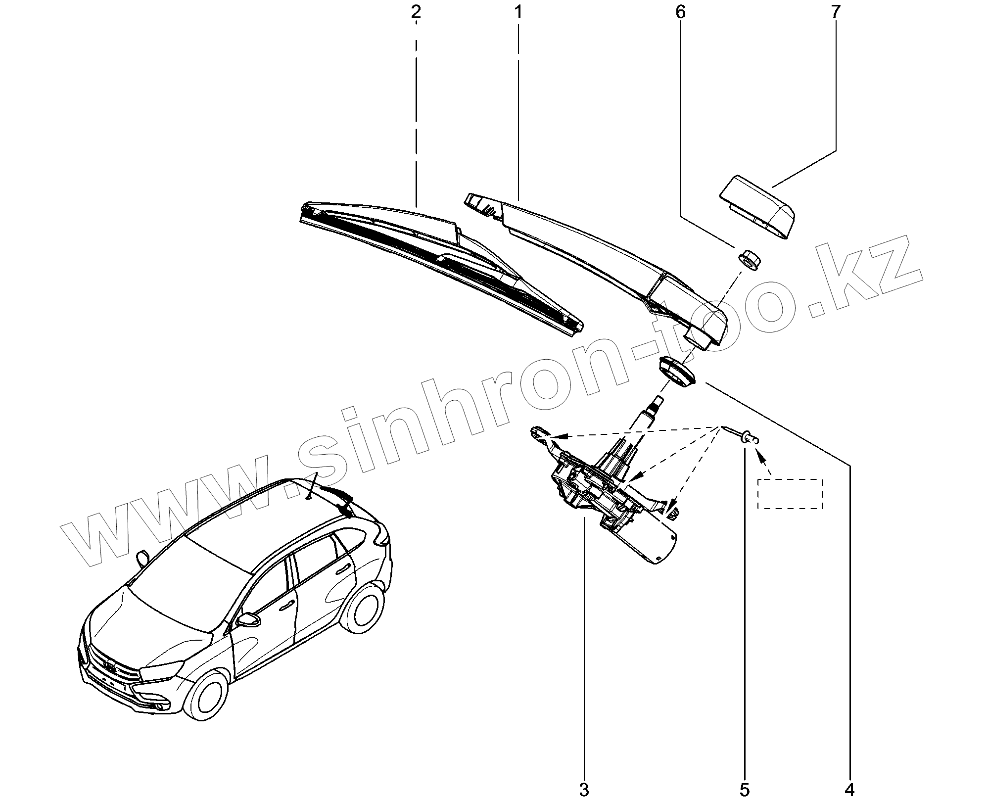 Каталог запасных частей к технике: ВАЗ LADA XRAY. 851810. Стеклоочиститель заднего стекла