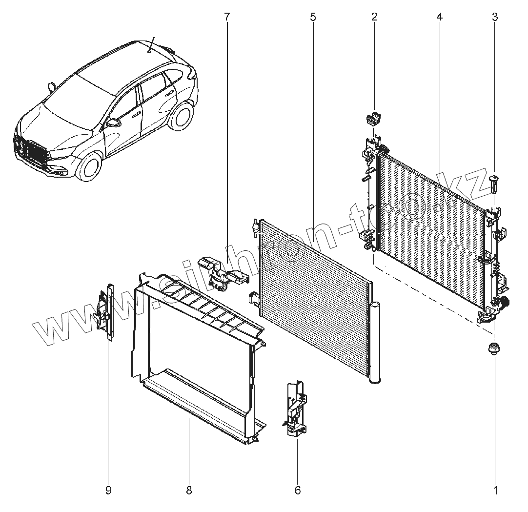 Каталог запасных частей к технике: ВАЗ LADA XRAY. 190110. РАДИАТОР ОХЛАЖДЕНИЯ